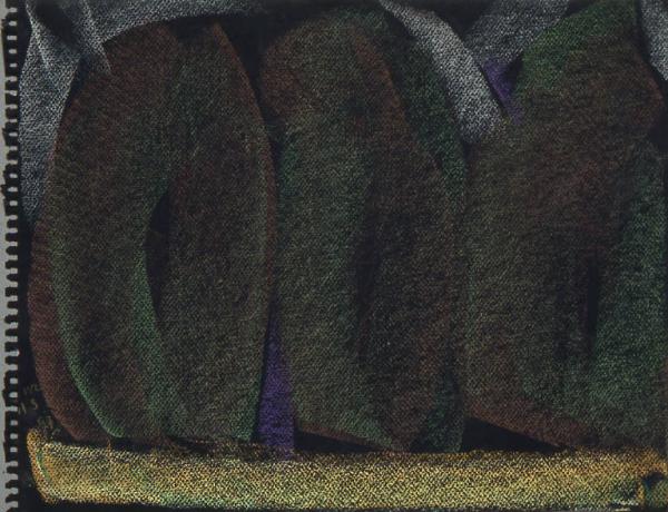 - NOTIZIE STORICO CRITICHE Anche nei pastelli Congdon, come in pittura, torna verso la fine della sua attività a una visione più naturalistica che sintetica di gusto vagamente naif. Il soggetto prediletto di quest ultimo periodo sono gli alberi, solitamente raffigurati in gruppi di tre con un rimando a volte esplicito alla Trinità di Rublev, anticipazione in questo caso dell'ultimo dipinto "Tre Alberi - Venerdì Santo".