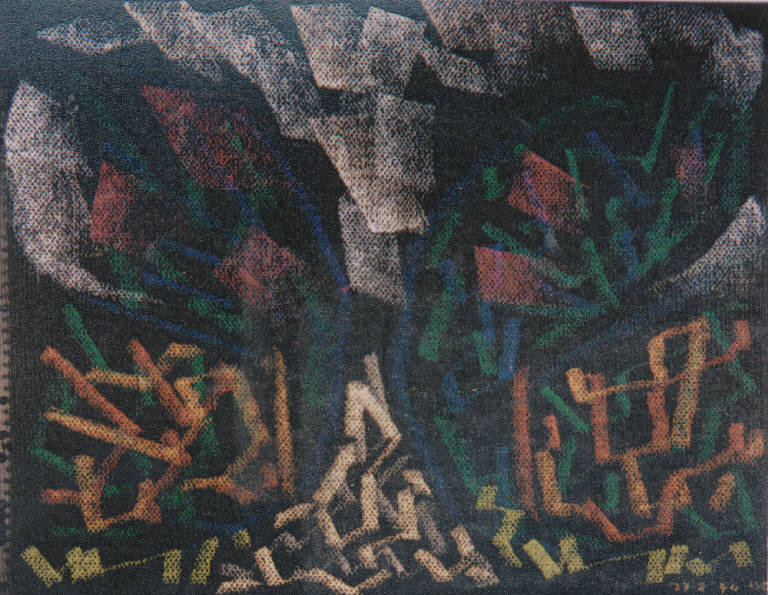 - NOTIZIE STORICO CRITICHE L'uso simultaneo delle diverse tecniche messe a punto negli anni precedenti interessa un piccolo gruppo di opere a pastello. Qui è infatti possibile osservare l'utilizzo del segno largo unitamente a uno più sottile, indugiando in soluzioni ora più sintetiche ora più naturalistiche e descrittive. Questo gruppo di opere riguarda principalmente soggetti agresti e in particolare un lago presente nelle vicinanze dello studio della Cascinazza, chiamato Pasturine.