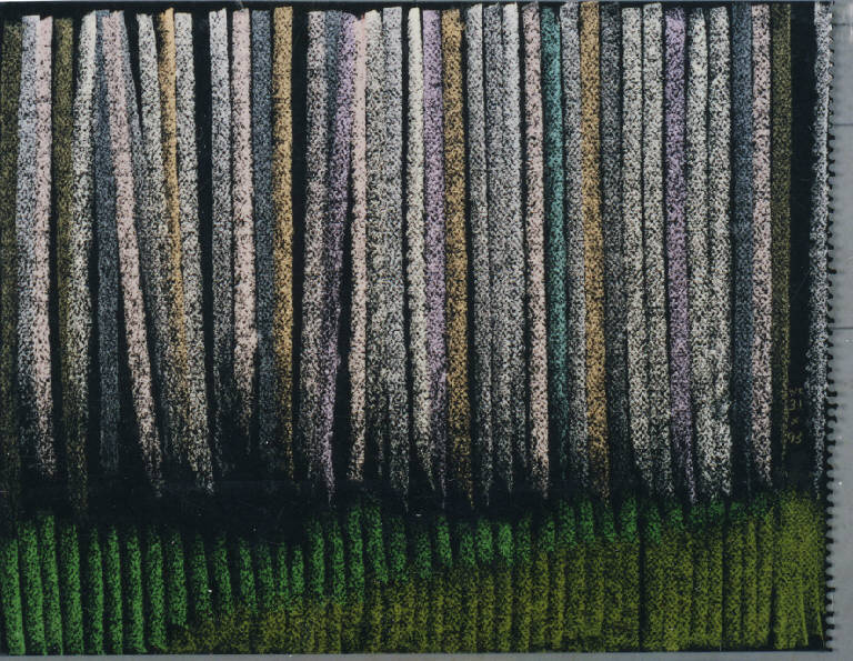 - NOTIZIE STORICO CRITICHE Altra variante del paesaggio è data da una serie di pastelli in cui l'immagine viene descritta mediante una cortina di segni paralleli o quasi, organizzati di volta in volta secondo un'economia differente: ora i segni si fanno più radi e lasciano spazio al fondo e al suo colore, che diventa un elemento più evidentemente costitutivo dell'immagine, ora i segni si fanno più fitti, fino quasi a nascondere il fondo lasciandone intravedere solo alcune linee sottili. C'è anche una differenza ritmica all'interno dell'utilizzo dei segni stessi: una più rigorosa data dall'utilizzo esclusivo di linee parallele, l'altra invece più "melodica" data dall'utilizzo di segni più brevi e ondulati. Di norma in tutti questi casi il paesaggio è dato dal dialogo fra i due elementi costitutivi cielo e terra o dal monologo di uno solo di questi elementi.
