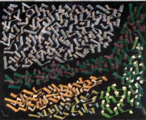 - NOTIZIE STORICO CRITICHE Il brulichio di linee spezzate, intrecciate e sovrapposte, diventa in una parte dei pastelli il motivo dominante che riempie quasi come in una composizione all over la totalità del foglio. Il senso di profondità, che evita la bidimensionalità pura, è dato dall'emergere fra gli spazi del fondo del supporto. A volte predomina lo studio di un elemento del paesaggio, ma più spesso l'intreccio di segni rimane organizzato in masse che rendono più leggibili gli scenari in senso naturalistico: si distinguono, ancora, i campi, il cielo, un albero oppure un cespuglio...