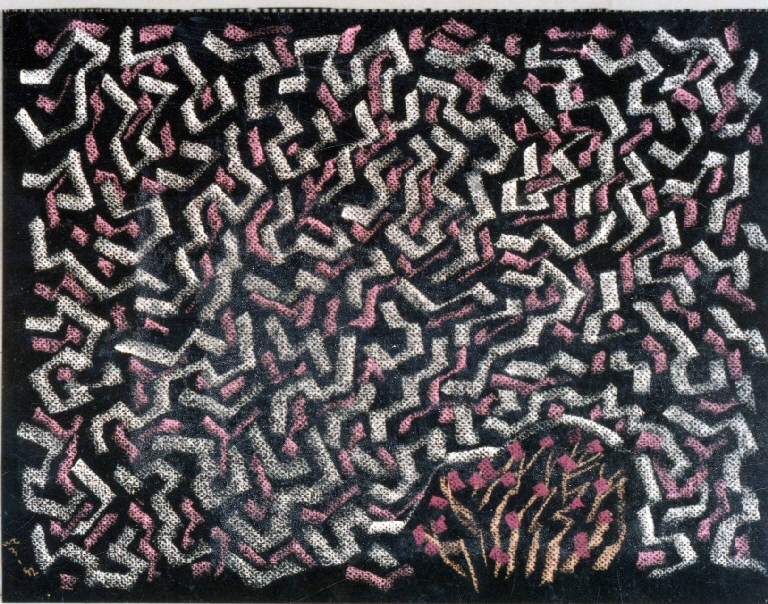 - NOTIZIE STORICO CRITICHE Il brulichio di linee spezzate, intrecciate e sovrapposte, diventa in una parte dei pastelli il motivo dominante che riempie quasi come in una composizione all over la totalità del foglio. Il senso di profondità, che evita la bidimensionalità pura, è dato dall'emergere fra gli spazi del fondo del supporto. A volte predomina lo studio di un elemento del paesaggio, ma più spesso l'intreccio di segni rimane organizzato in masse che rendono più leggibili gli scenari in senso naturalistico: si distinguono, ancora, i campi, il cielo, un albero oppure un cespuglio...