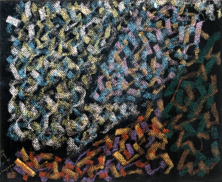 - NOTIZIE STORICO CRITICHE Il brulichio di linee spezzate, intrecciate e sovrapposte, diventa in una parte dei pastelli il motivo dominante che riempie quasi come in una composizione all over la totalità del foglio. Il senso di profondità, che evita la bidimensionalità pura, è dato dall'emergere fra gli spazi del fondo del supporto. A volte predomina lo studio di un elemento del paesaggio, ma più spesso l'intreccio di segni rimane organizzato in masse che rendono più leggibili gli scenari in senso naturalistico: si distinguono, ancora, i campi, il cielo, un albero oppure un cespuglio...