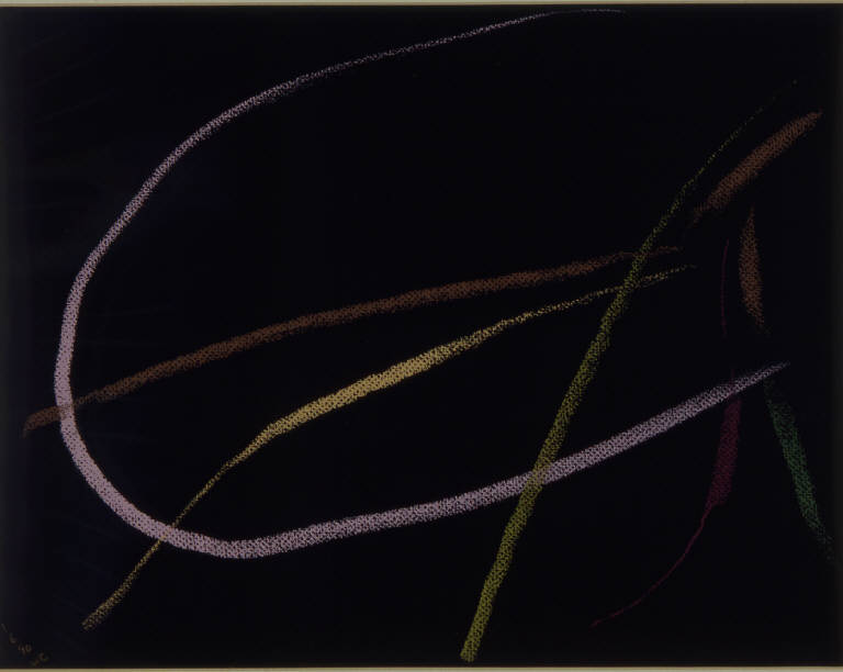 - NOTIZIE STORICO CRITICHE L'osservazione inesausta e quotidiana del paesaggio antistante lo studio trova nei pastelli, rispetto alla pittura, una via rappresentativa del tutto particolare. Gli elementi del paesaggio vengono infatti ridotti all'estremo fino a portare la composizione ad un'apparente astrazione. Tuttavia è possibile riconoscere quegli stessi elementi che caratterizzano i paesaggio della Bassa milanese anche più descrittivi: cielo, terra, canale e filare di alberi. Questi elementi chiave vengono riassunti in un solo segno che diventa la traccia luminosa di ciò che rappresenta. Il resto della composizione, il senso spaziale e atmosferico della stessa, è affidato al colore del supporto stesso che viene ravvivato dai segni ortogonali, curvi o obliqui che lo percorrono.