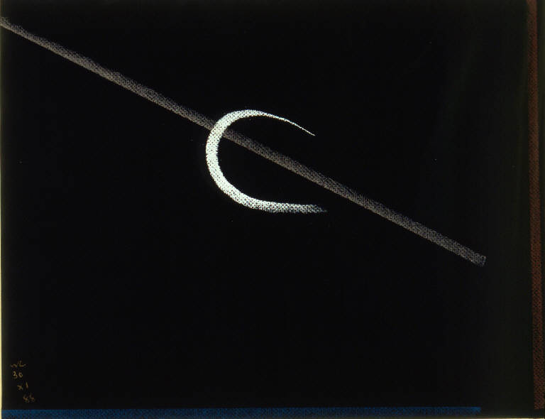 - NOTIZIE STORICO CRITICHE L'osservazione inesausta e quotidiana del paesaggio antistante lo studio trova nei pastelli, rispetto alla pittura, una via rappresentativa del tutto particolare. Gli elementi del paesaggio vengono infatti ridotti all'estremo fino a portare la composizione ad un'apparente astrazione. Tuttavia è possibile riconoscere quegli stessi elementi che caratterizzano i paesaggio della Bassa milanese anche più descrittivi: cielo, terra, canale e filare di alberi. Questi elementi chiave vengono riassunti in un solo segno che diventa la traccia luminosa di ciò che rappresenta. Il resto della composizione, il senso spaziale e atmosferico della stessa, è affidato al colore del supporto stesso che viene ravvivato dai segni ortogonali, curvi o obliqui che lo percorrono.