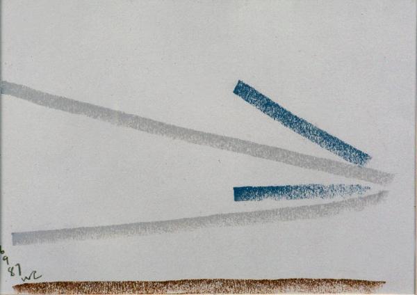 - NOTIZIE STORICO CRITICHE Il paesaggio marino della riviera adriatica, dove Congdon negli anni Ottanta era solito trascorrere le sue estati, subiscono lo stesso trattamento del paesaggio agreste della Bassa milanese. A partire dalle prime vedute più descrittive, lo scenario costiero si riduce a una partitura segnica di elementi che nell'ormai consueta sintesi di un solo tratto descrivono le componenti del paesaggio: sole, cielo, mare, spiaggia. Questi elementi chiave vengono così riassunti in un solo segno che diventa la traccia luminosa di ciò che rappresenta. Il resto della composizione, il senso spaziale e atmosferico della stessa, è affidato al colore del supporto stesso che viene ravvivato dai segni ortogonali, curvi o obliqui che lo percorrono.