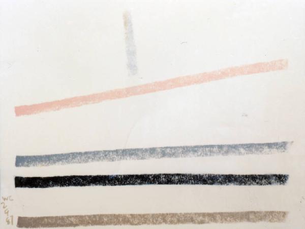 - NOTIZIE STORICO CRITICHE Il paesaggio marino della riviera adriatica, dove Congdon negli anni Ottanta era solito trascorrere le sue estati, subiscono lo stesso trattamento del paesaggio agreste della Bassa milanese. A partire dalle prime vedute più descrittive, lo scenario costiero si riduce a una partitura segnica di elementi che nell'ormai consueta sintesi di un solo tratto descrivono le componenti del paesaggio: sole, cielo, mare, spiaggia. Questi elementi chiave vengono così riassunti in un solo segno che diventa la traccia luminosa di ciò che rappresenta. Il resto della composizione, il senso spaziale e atmosferico della stessa, è affidato al colore del supporto stesso che viene ravvivato dai segni ortogonali, curvi o obliqui che lo percorrono.