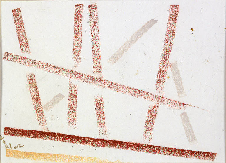- NOTIZIE STORICO CRITICHE Il paesaggio marino della riviera adriatica, dove Congdon negli anni Ottanta era solito trascorrere le sue estati, subiscono lo stesso trattamento del paesaggio agreste della Bassa milanese. A partire dalle prime vedute più descrittive, lo scenario costiero si riduce a una partitura segnica di elementi che nell'ormai consueta sintesi di un solo tratto descrivono le componenti del paesaggio: sole, cielo, mare, spiaggia. Questi elementi chiave vengono così riassunti in un solo segno che diventa la traccia luminosa di ciò che rappresenta. Il resto della composizione, il senso spaziale e atmosferico della stessa, è affidato al colore del supporto stesso che viene ravvivato dai segni ortogonali, curvi o obliqui che lo percorrono.