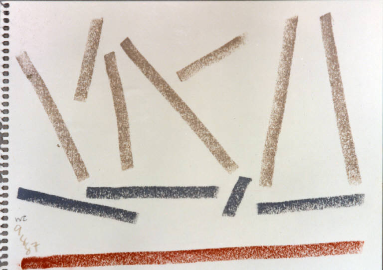 - NOTIZIE STORICO CRITICHE Il paesaggio marino della riviera adriatica, dove Congdon negli anni Ottanta era solito trascorrere le sue estati, subiscono lo stesso trattamento del paesaggio agreste della Bassa milanese. A partire dalle prime vedute più descrittive, lo scenario costiero si riduce a una partitura segnica di elementi che nell'ormai consueta sintesi di un solo tratto descrivono le componenti del paesaggio: sole, cielo, mare, spiaggia. Questi elementi chiave vengono così riassunti in un solo segno che diventa la traccia luminosa di ciò che rappresenta. Il resto della composizione, il senso spaziale e atmosferico della stessa, è affidato al colore del supporto stesso che viene ravvivato dai segni ortogonali, curvi o obliqui che lo percorrono.