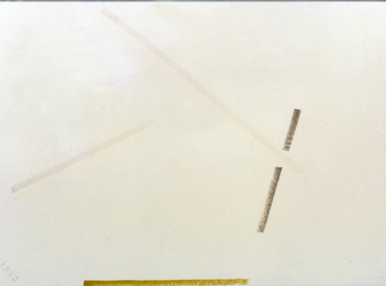 - NOTIZIE STORICO CRITICHE L'osservazione inesausta e quotidiana del paesaggio antistante lo studio trova nei pastelli, rispetto alla pittura, una via rappresentativa del tutto particolare. Gli elementi del paesaggio vengono infatti ridotti all'estremo fino a portare la composizione ad un'apparente astrazione. Tuttavia è possibile riconoscere quegli stessi elementi che caratterizzano i paesaggio della Bassa milanese anche più descrittivi: cielo, terra, canale e filare di alberi. Questi elementi chiave vengono riassunti in un solo segno che diventa la traccia luminosa di ciò che rappresenta. Il resto della composizione, il senso spaziale e atmosferico della stessa, è affidato al colore del supporto stesso che viene ravvivato dai segni ortogonali, curvi o obliqui che lo percorrono.