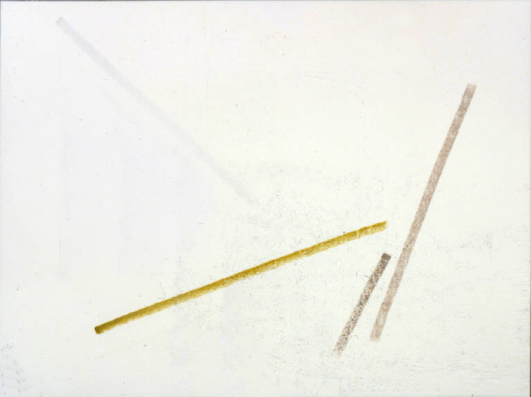 - NOTIZIE STORICO CRITICHE L'osservazione inesausta e quotidiana del paesaggio antistante lo studio trova nei pastelli, rispetto alla pittura, una via rappresentativa del tutto particolare. Gli elementi del paesaggio vengono infatti ridotti all'estremo fino a portare la composizione ad un'apparente astrazione. Tuttavia è possibile riconoscere quegli stessi elementi che caratterizzano i paesaggio della Bassa milanese anche più descrittivi: cielo, terra, canale e filare di alberi. Questi elementi chiave vengono riassunti in un solo segno che diventa la traccia luminosa di ciò che rappresenta. Il resto della composizione, il senso spaziale e atmosferico della stessa, è affidato al colore del supporto stesso che viene ravvivato dai segni ortogonali, curvi o obliqui che lo percorrono.