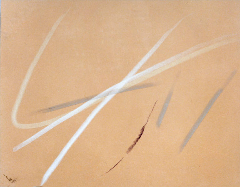 - NOTIZIE STORICO CRITICHE L'osservazione inesausta e quotidiana del paesaggio antistante lo studio trova nei pastelli, rispetto alla pittura, una via rappresentativa del tutto particolare. Gli elementi del paesaggio vengono infatti ridotti all'estremo fino a portare la composizione ad un'apparente astrazione. Tuttavia è possibile riconoscere quegli stessi elementi che caratterizzano i paesaggio della Bassa milanese anche più descrittivi: cielo, terra, canale e filare di alberi. Questi elementi chiave vengono riassunti in un solo segno che diventa la traccia luminosa di ciò che rappresenta. Il resto della composizione, il senso spaziale e atmosferico della stessa, è affidato al colore del supporto stesso che viene ravvivato dai segni ortogonali, curvi o obliqui che lo percorrono.