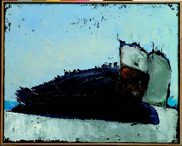 - NOTIZIE STORICO CRITICHE Tra le opere estreme di Congdon si distingue la serie Relitto, della fine del 1997, nella quale il gesto dell'artista sembra dorminare con maggior sicurezza rispetto agli anni precedenti. In questa immagine esotica (Relitto è ispirato da alcune fotografie di isole presso la costa venezuelana), ritornano modi e motivi che ci riconducono alla pittura dei primi anni Settanta: la nave, il mare, i toni luminosi dei cieli tropicali. In Relitto, 7 dalle delicate sfumature cromatiche e dai forti contrasti tonali, la massa della nave-relitto, scura, arenata su una candida spiaggia, giganteggia un poco enigmatica nella deformazione che le impone la visione scorciata, stagliandosi sul terso cielo azzurro.
