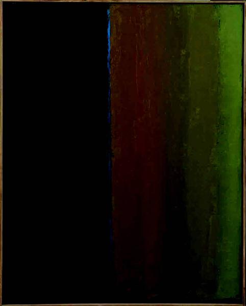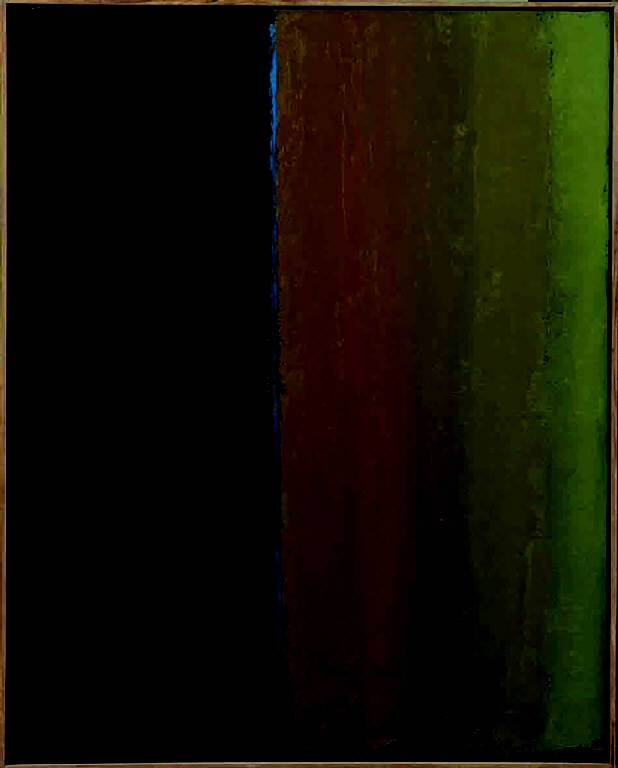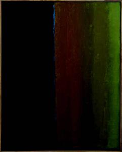 - NOTIZIE STORICO CRITICHE In Nero - Verde si conferma la nuova tendenza, maturata poi per tutto il decennio, ad ordinate e regolari partiture di colore. Il titolo del quadro, che ci indica il soggetto, non descrive infatti i campi (comunque sicuro spunto primo dell'artista) ma il nero e il verde, due colori. Con questo genere di opere Congdon si ricollega all'idea dell'oggetto d'arte come non simboleggiante nulla se non se stesso, ideale caro a buona parte dell'astrattismo americano a cavallo tra gli anni Cinquanta e Sessanta - color field painting americana. I rapporti tonali tra colori scuri e saturi si presentano in lievi gradazioni. Talvolta il campo di colore reca ancora traccia della trama pittorica, anche se nella maggior parte dei punti non si avverte la mano dell'artista, il colore si fa infatti più fluido.