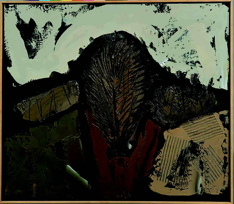 - NOTIZIE STORICO CRITICHE In quest'opera si rende esplicita la coincidenza fra l'immagine della croce e il paesaggio naturale; in questo senso il dipinto sembra una propaggine più vivace dal punto di vista cromatico del Crocefisso 46 del 1969. In maniera lievemente didascalica gli elementi del paesaggio descrivono le parti anatomiche del Cristo crocefisso: l'albero al centro diventa il capo reclinato, i due campi ai lati diventano le braccia della croce e la striscia di terra rossa al centro il corpo.
