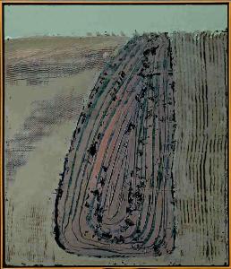 - NOTIZIE STORICO CRITICHE Nei primi mesi del 1994, Congdon si cimenta con le grandi stesure cromatiche dei campi. "Campi di terra", il cui impianto - l'orizzonte alto a separare cielo e terra nonché l'ardita prospettiva del campo arato - sollecita un confronto quanto mai interessante con analoghi dipinti dei primi anni '80 (per esempio la serie "Terra Arida" dell'81): è evidente come ora Congdon si adoperi per adattare il proprio linguaggio alle condizioni fisiche peggiorate, poiché il colore non viene più steso in abbondanti e spessi impasti, ma lascia in più punti trasparire la preparazione nera; inoltre il contorno della grande massa del campo risulta a prima vista incerto e fiacco, mentre le incisioni nel colore denunciano la difficoltà a controllare il gesto. E tuttavia le singole "defaillances", sembrano compensarsi: il possesso dello spazio è ben saldo e l'accordo cromatico sublime.