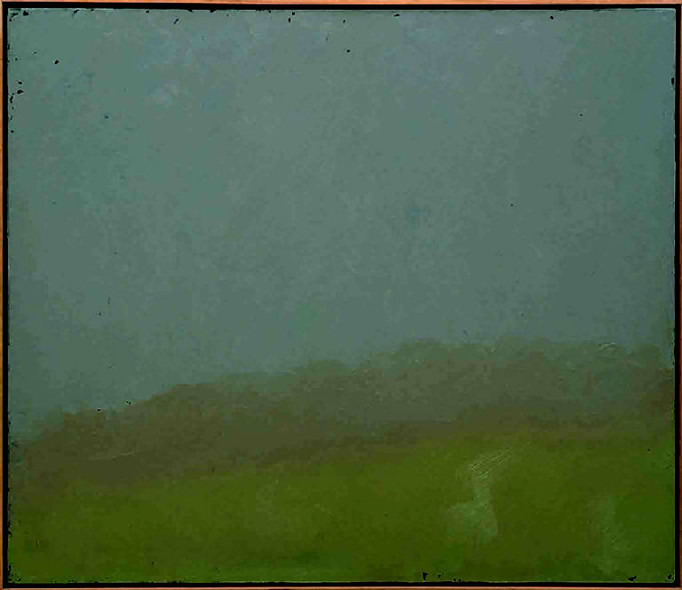 - NOTIZIE STORICO CRITICHE La grande lezione dei monocromi dell'89, viene raccolta in una serie di opere dei primi sei mesi del '90 che non sarebbe appropriato definire monocrome: in esse, effettivamente, ricompaiono le tradizionali partiture del paesaggio. La novità consiste principalmente nel fatto che le partiture non comportano separazione o contrasto ma intima fusione e accordo delle diverse aree, quasi esse costituissero minime variazioni di un'unica tonalità, identificata con la luce stessa. In Temporale ciò avviene grazie al delicato sfumare di un colore nell'altro, con un effetto arcobaleno.