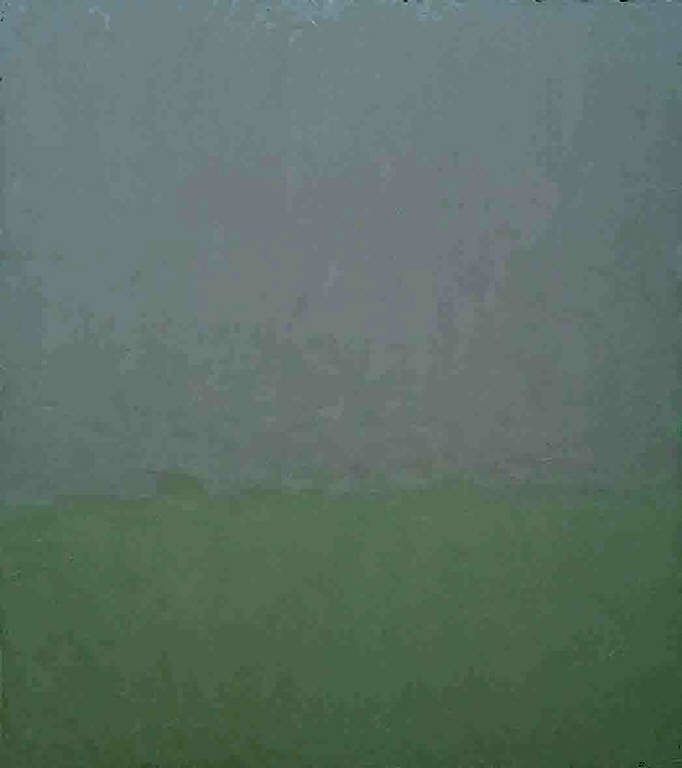 - NOTIZIE STORICO CRITICHE La grande lezione dei monocromi dell'89, viene raccolta in una serie di opere dei primi sei mesi del '90 che non sarebbe appropriato definire monocrome: in esse, effettivamente, ricompaiono le tradizionali partiture del paesaggio. La novità consiste principalmente nel fatto che le partiture non comportano separazione o contrasto ma intima fusione e accordo delle diverse aree, quasi esse costituissero minime variazioni di un'unica tonalità, identificata con la luce stessa. In Per G. L. (nebbia), e soprattutto in Sole pomeriggio, i passaggi tonali sono scalati con un gioco più evidente della spatola nello spessore del pigmento.