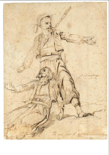 - NOTIZIE STORICO CRITICHE Luigi Norfini prende parte alla battaglia di Solferino e S. Martino ricoprendo l'incarico di " corrispondente pittore" assegnatgli direttamente da Vittorio Emanuele II, al fine di realizzare dipinti di storia dal carattere ufficiale per documentare e commemorare le vittorie sabaude. Questi disegni sono con tutta probabilità studi preparatori per tali opere pittoriche.\nGli zuavi, organizzati in reggimenti agli ordini dell'armata francese, si distinsero nei combattimenti di Solferino.
