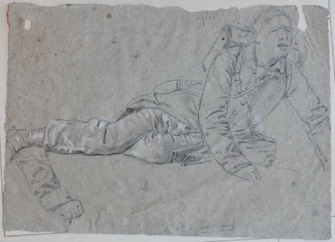 Soldato italiano ferito. Fante italiano ferito accasciato