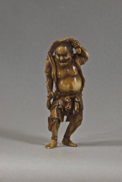 Netsuke raffigurante Kongo Misshaku con il torso nudo e vestito solo di un gonnellino allacciato in vita; i capelli sono raccolti sul cranio in una crocchia; nella mano sinistra, sollevata in alto, tiene una vajra (in giapponese kongosho), una sorta di arma rituale con ampi significati simbolici di grande potenza. I due fori dell'himotoshi, uno di dimensioni leggermente maggiori rispetto all'altro, si trovano sul retro della figura, all'altezza del bacino.