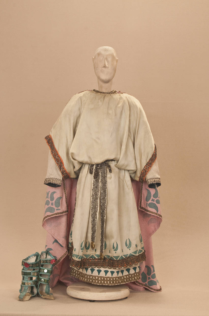 Costume di nobile greco di epoca romana per il personaggio del Re Magio Gaspare composto da veste, mantello e calzari.