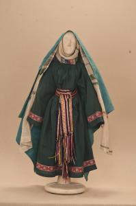 Costume di popolana composto da veste, velo, soggolo, mantello e cintura.