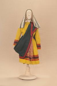 Costume di pastore composto da veste, copricapo, mantello e cintura.