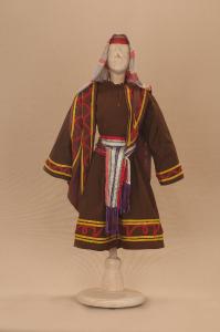 Costume di pastore composto da veste, copricapo, mantello e cintura.