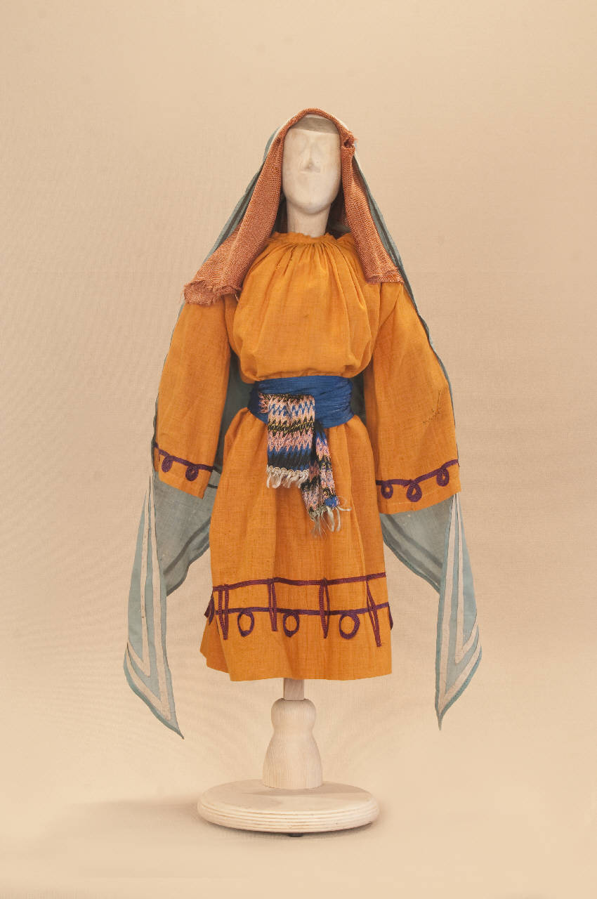 Costume di pastore composto da veste, copricapo, mantello e cintura.