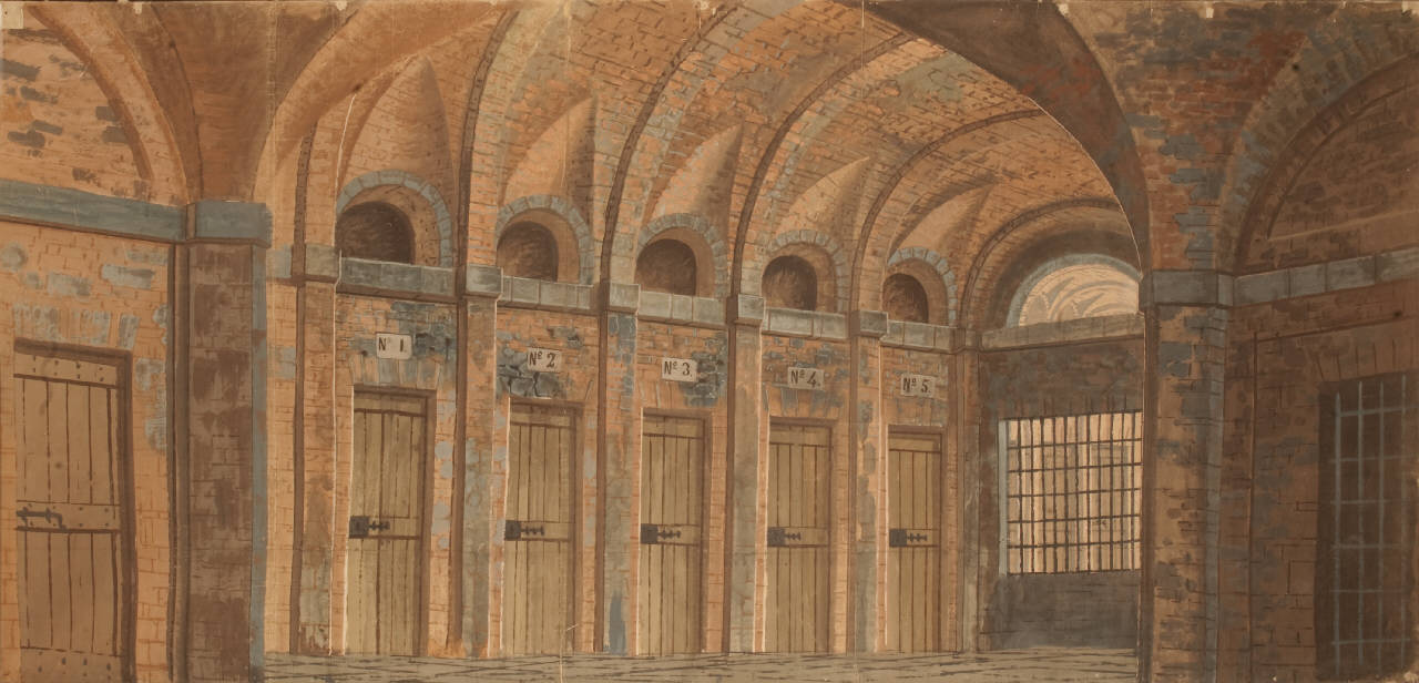 Scenografia in carta, fortezzata con strisce di tessuto di cotone, dipinta ad acqua e composta da un solo fondale.