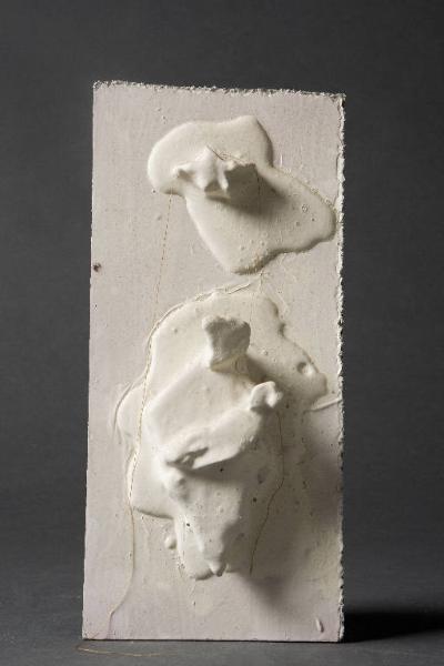 Forma bianca, formella rettangolare rappresentante una Madonna con Bambino e stella, fortemente rilevati, che sembrano emergere da una sorta di "macchia materica" a bassorilevo. Intorno alle figure, fortemente stilizzate, si snoda un filo beige. Il rilievo in gesso è stato coperto da uno spesso strato di colore bianco opaco, steso a spatola.