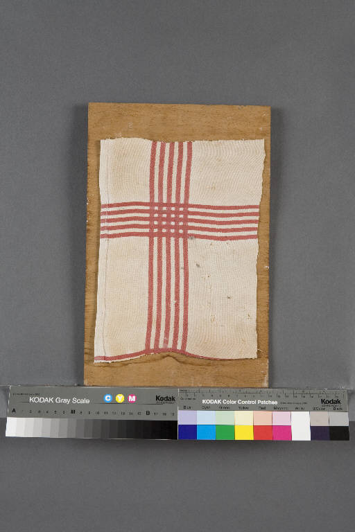 Su una tavoletta di compensato è incollato un tovagliolo bianco con quadretti rossi, precedentemente usato nel refettorio del Convento di Canepanova. Al verso un rudimentale gancio creato con due puntine incollate con silicone e di filo di ferro.