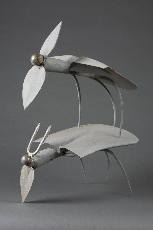 - NOTIZIE STORICO CRITICHE Il gruppo di sculture, tutte copie uniche, la cui ricerca cominciò nel 1968 per una indagine antropologica su "Le cose che furono", è composto da oggetti contadini (zappe, vanghe, aratri, badili, forche,...) più o meno manipolati. La materia base è ferro forgiato, cromato, dorato o argentato e laccato con lacche cinesi. Le dorature e le lacche sono state realizzate nello studio dell'artista di Venezia con il Maestro Sandro Carraro.