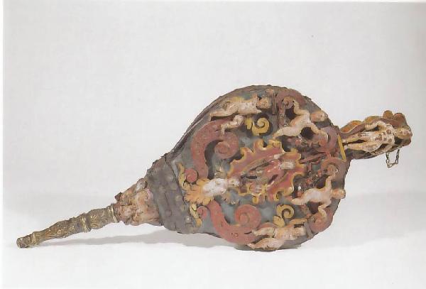 - NOTIZIE STORICO CRITICHE I motivi decorativi delle volute poste sul lato principale e il mascherone intagliato nella parte retrostante, assai simili per forme e modelli agli stucchi eseguiti nelle dimore patrizie venete durante la seconda metà del Cinquecento, fanno ritenere questo soffietto eseguito a Venezia entro la fine del secolo, o al più tardi, all'inizio di quello successivo. In particolare si potrebbe avvicinare la decorazione del soffietto a quelle presenti sulla cappa di uno dei camini delle sale di parata della villa della Rotonda presso Vicenza i cui stucchi furono realizzati tra il 1577 e il 1591 da Agostino Rubini, nipote di Alessandro Vittoria. Altri esemplari simili si trovano esposti al Museo Leone di Vercelli, al Victoria and Albert e alla Wallace Collection di Londra, al Kunst-gewerbemuseum di Berlino e in collezione privata, mentre altri soffietti in noce intagliato furono presentati dal conte Gian Giacomo Poldi Pezzoli, dal patrizio milanese Massimiliano Mainoni e dal marchese Gian Martino Arconati all'Esposizione storica d'Arte Industrial tenuta a Milano nel 1874. Uno degli esemplari fu pubblicato nell'Album fotografico realizzato in quella occasione e conservato presso la Biblioteca d'Arte del Castello Sforzesco.