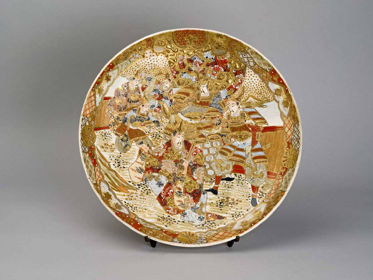 - NOTIZIE STORICO CRITICHE Stile Satsuma, realizzato in epoca Meiji (1868-1912), tra la fine del XIX e l'inizio del XX secolo. Il piatto, definito allora "un piatto Satsuma moderno", fu donato dal commendator Achille Bertarelli il 31 dicembre 1929; gli era pervenuto come legato dalla signora N.D. Angela Pecchio Ghiringhelli (v. BIB).