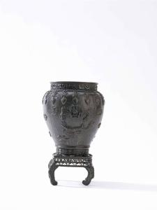 - NOTIZIE STORICO CRITICHE La firma Teijo potrebbe riferirsi a Kurihara Teijo, l'artista che creo le 500 statue di rakan del Kenchoji di Kamakura e del quale esiste un peso per carta a\nforma di tartaruga nel Museo Nazionale di Tokyo. Poco si conosce di questo artigiano se non che fu anch'egli allievo di Murata Seimin. Gakuzan potrebbe essere\nil nanori, ovvero un nome che si legge nella forma kun, che in passato era concesso ai migliori artigiani. La forma del labbro e funzionale all'inserimento di un piatto per la trasformazione in vaso usubata.\n\nIn mostra all'Esposizione storica d'arte industriale- Milano 1874.