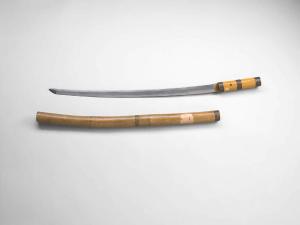Katana con fodero (saya) e impugnatura (tsuka) in bambù (take).