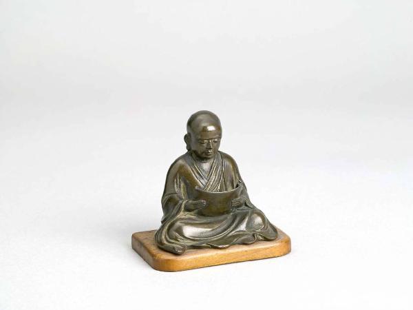 Scultura in bronzo raffigurante uno dei Judaideshi, ovvero i "Dieci grandi discepoli del Buddha". Base in legno.