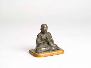 Scultura in bronzo raffigurante uno dei Judaideshi, ovvero i "Dieci grandi discepoli del Buddha". Base in legno.
