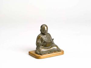 Scultura in bronzo raffigurante uno dei Judaideshi, ovvero i "Dieci grandi discepoli del Buddha". Base in legno.