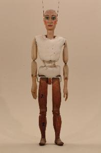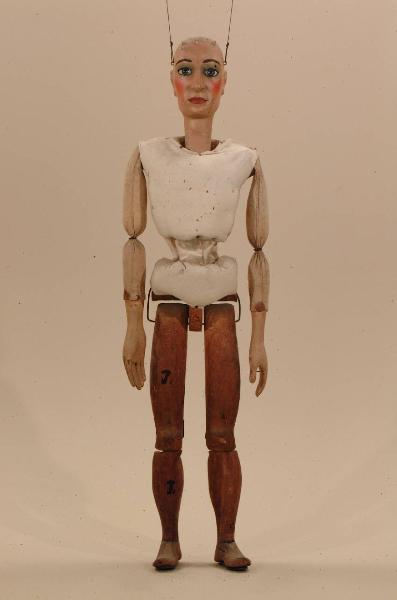 Corpo grande tagliato in vita; testa con bocca e occhi fissi; mani rigide a dita unite; piedi fissi con suole di piombo; bilancino originale a croce metodo Holden