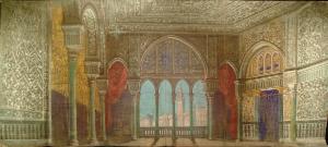 Scenografia in carta, fortezzata con strisce di tessuto di cotone, dipinta ad acqua e composta da un solo fondale.