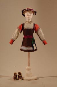 Costume per bambino popolano di foggia rinascimentale composto da\nveste, cintura con borsetta, cappello, scarpe