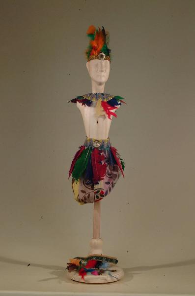 Costume di selvaggio costituito da gonnellino, bracciali, collare, sottanina, copricapo