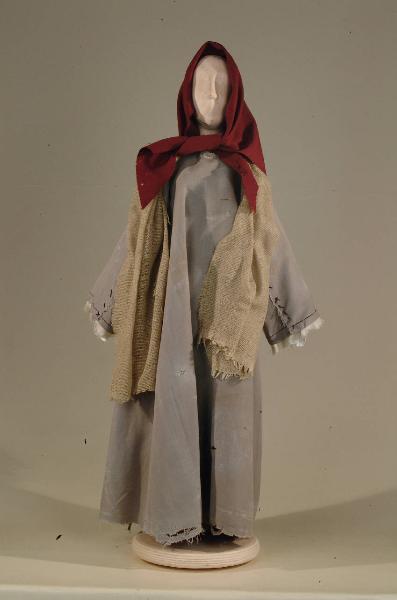 Costume di popolana del '400 costituito da veste, fazzoletto da collo, velo da testa