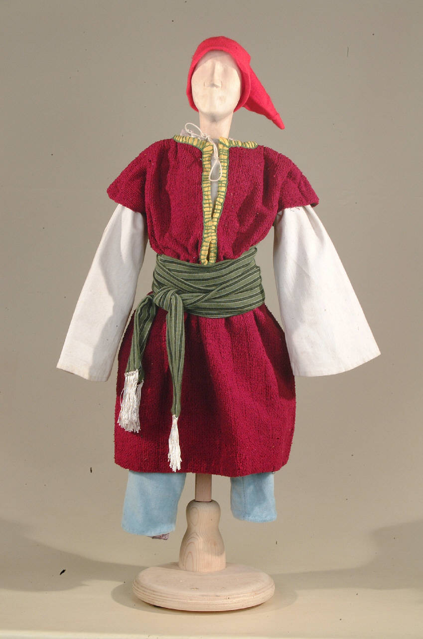 Costume popolano del '400 costituito da camicia, veste, calzabrache, cintura, berretto.