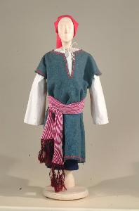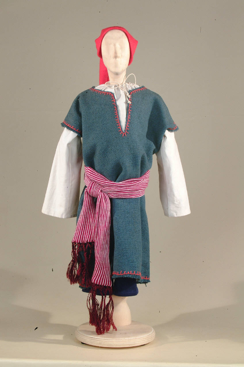 Costume popolano del '400 costituito da camicia, calzabrache, veste, cintura, berretto.