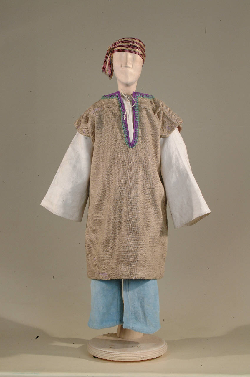 Costume di marinaio del '400 costituito da braghe, veste, cintura, camicia, fascia per testa