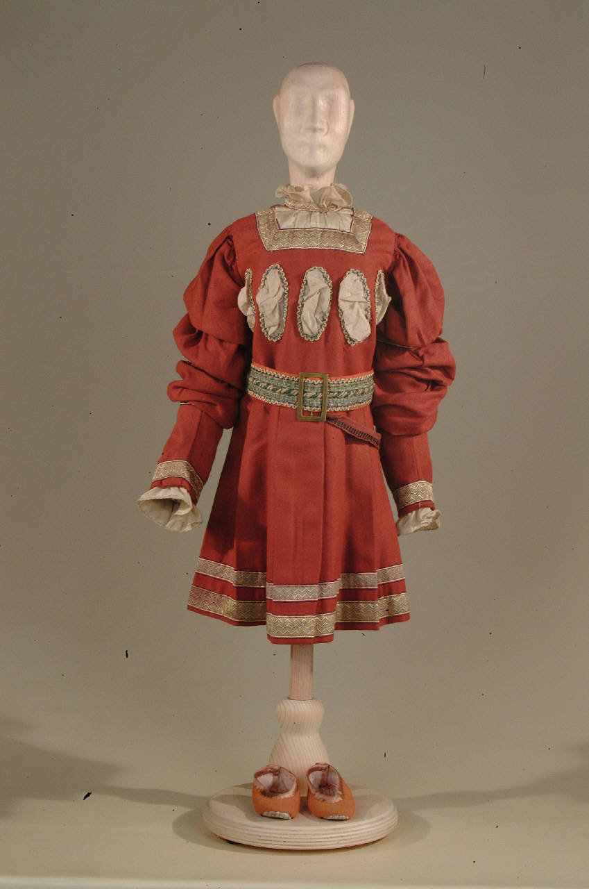 Costume per gentiluomo del '400 costituito da veste, cintura, scarpe
