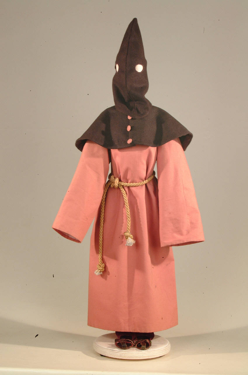Costume di confratello costituito da veste, cintura, sandali, mantellina, cappuccio.